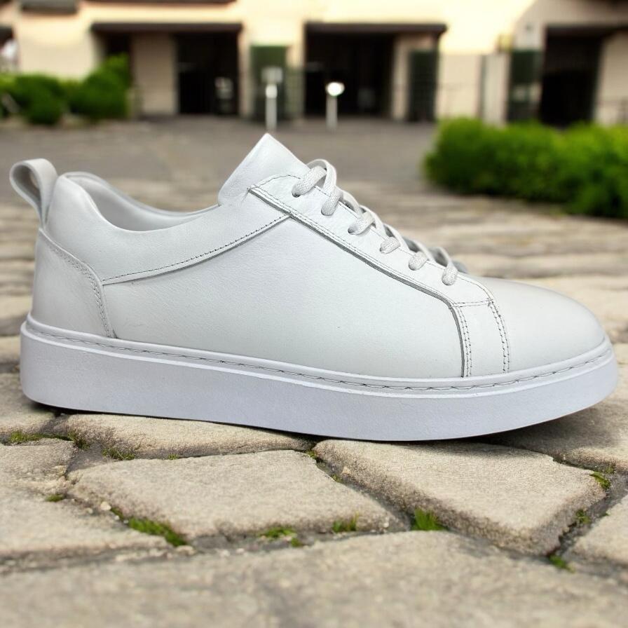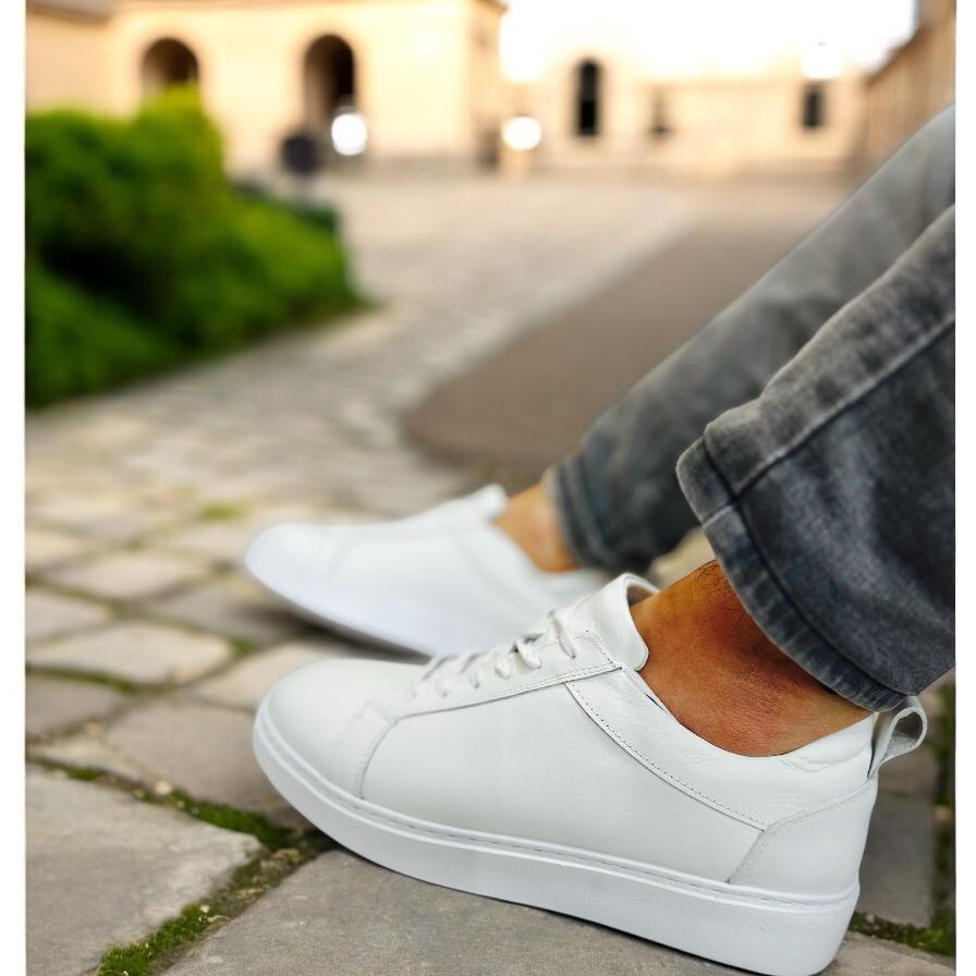 Beyaz Hakiki Deri Erkek Spor Ayakkabı – Şıklığın ve Konforun Buluşma Noktası